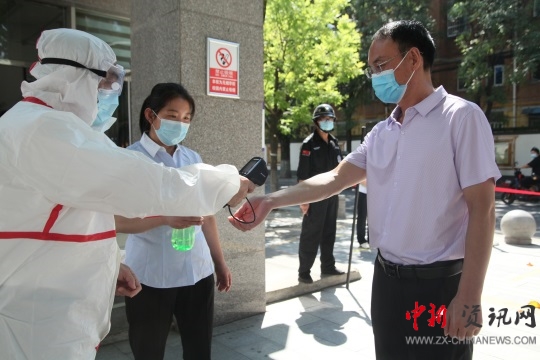 上午10點(diǎn)20分演練開始。教師們?nèi)膛宕骱每谡钟行蚺抨?duì)入校,前后間隔一米,依次通過學(xué)校紅外線自動(dòng)測溫通道。檢測過程中發(fā)現(xiàn)一名發(fā)熱人員,立即啟動(dòng)疫情防控應(yīng)急處置預(yù)案,并立即上報(bào)上級(jí)有關(guān)部門,在場校醫(yī)立即將學(xué)生引導(dǎo)至隔離地點(diǎn),再次測量體溫,聯(lián)系附近醫(yī)院,轉(zhuǎn)運(yùn)發(fā)熱人員,確保發(fā)熱人員不進(jìn)校,最后對(duì)校園環(huán)境做好消毒處置工作。