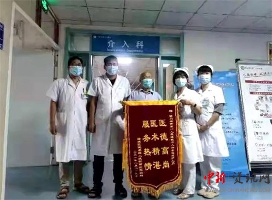 中新河南網(wǎng)駐馬店9月8日電(通訊員 李明華 邢小寶)8月29日,患者苗先生把一面寫有“醫(yī)德高尚,醫(yī)術(shù)精湛,服務(wù)熱情”的錦旗送到了駐馬店市第一人民醫(yī)院介入科醫(yī)護人員的手中,表達對科室全體醫(yī)護人員的感激之情。
