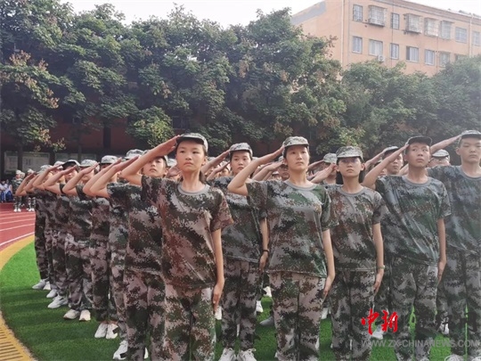 駐馬店市第九中學七年級新生軍訓閉營儀式震撼人心