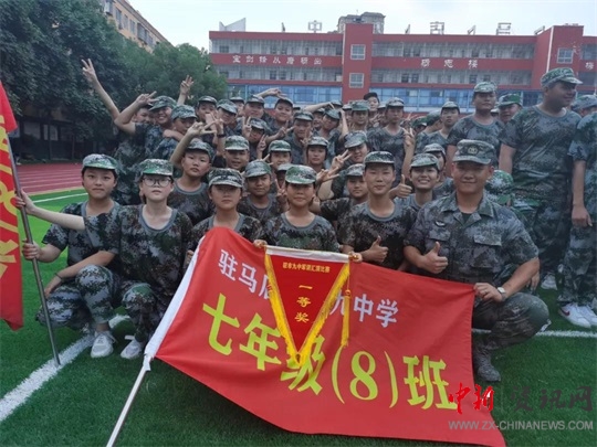 隨后,政教處主任周忠宣讀了本次軍訓班級獲獎情況,駐馬店市第九中學于亞偉校長親自給獲獎班級頒發(fā)了錦旗并與全體七年級師生合影留念。