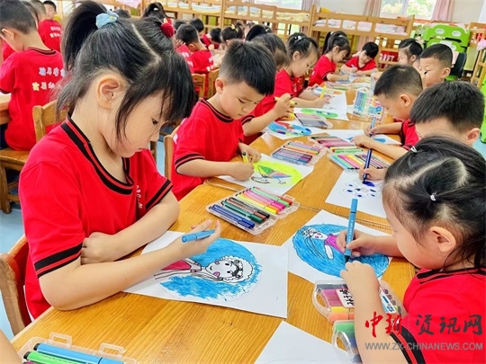 大班孩子以“我的祖國 團結(jié)友善”為主題開展活動,結(jié)合幼兒收集的圖片、實物資料,分別布置了“北京天安門”“美麗的中國”“名勝古跡”“祖國特產(chǎn)展”“民族服飾展”等教育環(huán)境和主題墻。讓幼兒親身體會華夏的傳統(tǒng)與文化,知道中國有五十六個民族,領(lǐng)略祖國山河的秀麗,了解各地特產(chǎn)寶藏,感受祖國的地大物博。通過開展體育游戲《我是人民解放軍》、歌舞表演《國旗國旗真美麗》、繪畫《民族娃娃來做客》等活動,從而激發(fā)幼兒熱愛祖國的情感。體育游戲中盡顯小小解放軍的風采,孩子們學習解放軍叔叔不怕苦不怕累的良好品質(zhì),激發(fā)幼兒報效祖國,保衛(wèi)祖國的愛國情感。一幅幅精心繪制的作品創(chuàng)意十足,將孩子們內(nèi)心對祖國、對家鄉(xiāng)的愛濃縮在一支小小的畫筆里,讓多姿多彩的夢想飛向祖國媽媽的懷抱中。