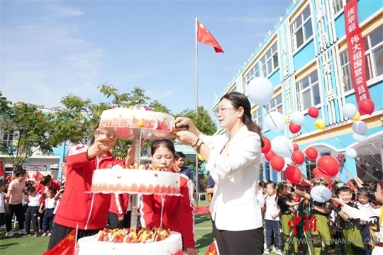 所有在場老師和小朋友們一起為祖國送上甜美的祝福,祝愿偉大祖國繁榮昌盛、國泰民安。此時此刻,園長媽媽和大家一起分享香甜的蛋糕,一起分享幸福,分享快樂!