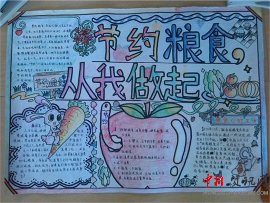 學(xué)生們繪制手抄報(bào),呼吁每位學(xué)生要用自己的實(shí)際行動(dòng)去珍惜糧食,做一個(gè)愛(ài)惜糧食、節(jié)約糧食的好學(xué)生。