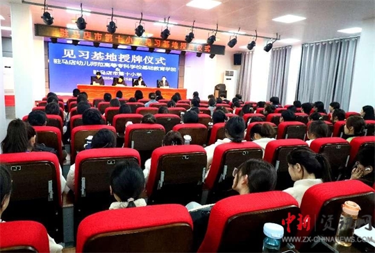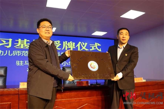 最后,駐馬店幼兒師范高等?茖W(xué)校校長李柯頒授見習(xí)基地匾牌,第十小學(xué)王華起校長接牌。